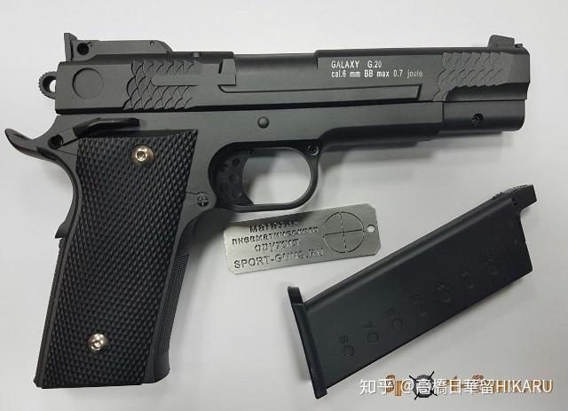 G.20,在前几年经常有人用这款M945造型的bb枪去爆红酒瓶。。G.20有一个空仓挂机,但是挂住需要技巧,好像是把枪口朝下。。。弹匣也不再是小弹匣,换成了与真铁大小相仿的弹匣,但应该还是小了,对了,弹匣是合金的。。。。至于爆红酒瓶,不多谈!