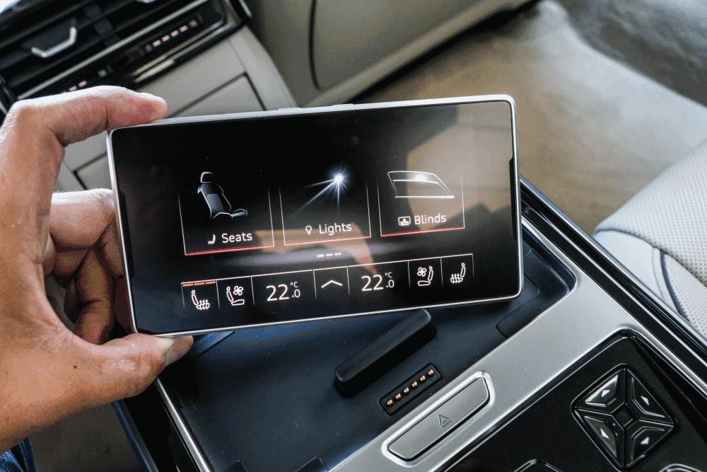 而这块可以独立拆下的平板控制器,可以针对室内灯、座椅、车窗、音乐、电视以及空调等进行调整。