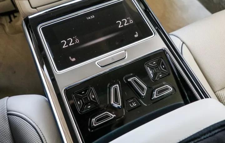 后座前方均设有大型触控屏,如果后座大老板或乘客想更换歌曲,可以直接从这里切换,甚至是广播、音乐、影像、车辆等功能,也都能直接控制改变。