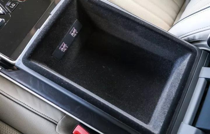 另外奥迪A8分为五人座与四人座,上图为中央扶手可以翻折的五人座,若为四人座版本,就会比照Panamera那样从前方延伸到后座,并且也具有二处可收折的置物空间。