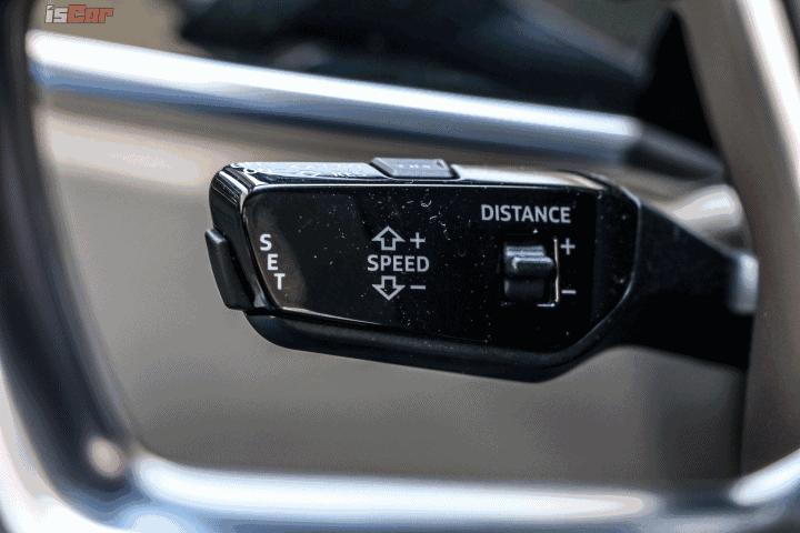 位于方向盘左下侧的定速杆,轻轻拨动就可以启动或调整智能定速行驶系统,对应最高时速则可达250km/h。