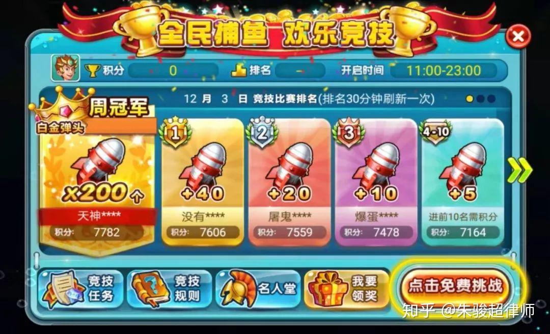 比赛模式中,玩家通过缴纳报名费或免费,在限定时间内使用相同的消耗型弹药,通过比拼分数的形式进行对决。根据排名可获得对应奖励。《波克捕鱼》的竞技场正是这种模式。《波克捕鱼》的竞技场分为“8人免费赛”、“全民赛”和“大奖赛”,比赛场的报名条件跟炮台倍数相关,炮台倍数越高的比赛场,奖励越丰富。